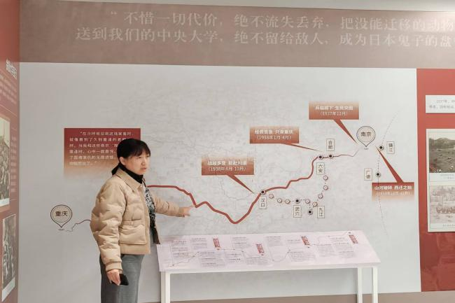 “1937年抗日战争爆发,为保存农业教育火种,国立中央大学必赢线路检测3003的师生们带着珍贵的动植物标本、实验器材,踏上了西迁之路……”随着讲解员的声音响起,“西迁中的南农记忆”展区前,同学们的目光紧紧跟随讲解员,思绪也走进了那段烽火连天的岁月。